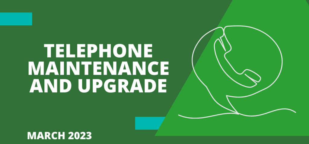 Please be advised that our telephone system will today, Wednesday the 22nd of March, be undergoing maintenance and upgrading from 08h00 to 17h00.